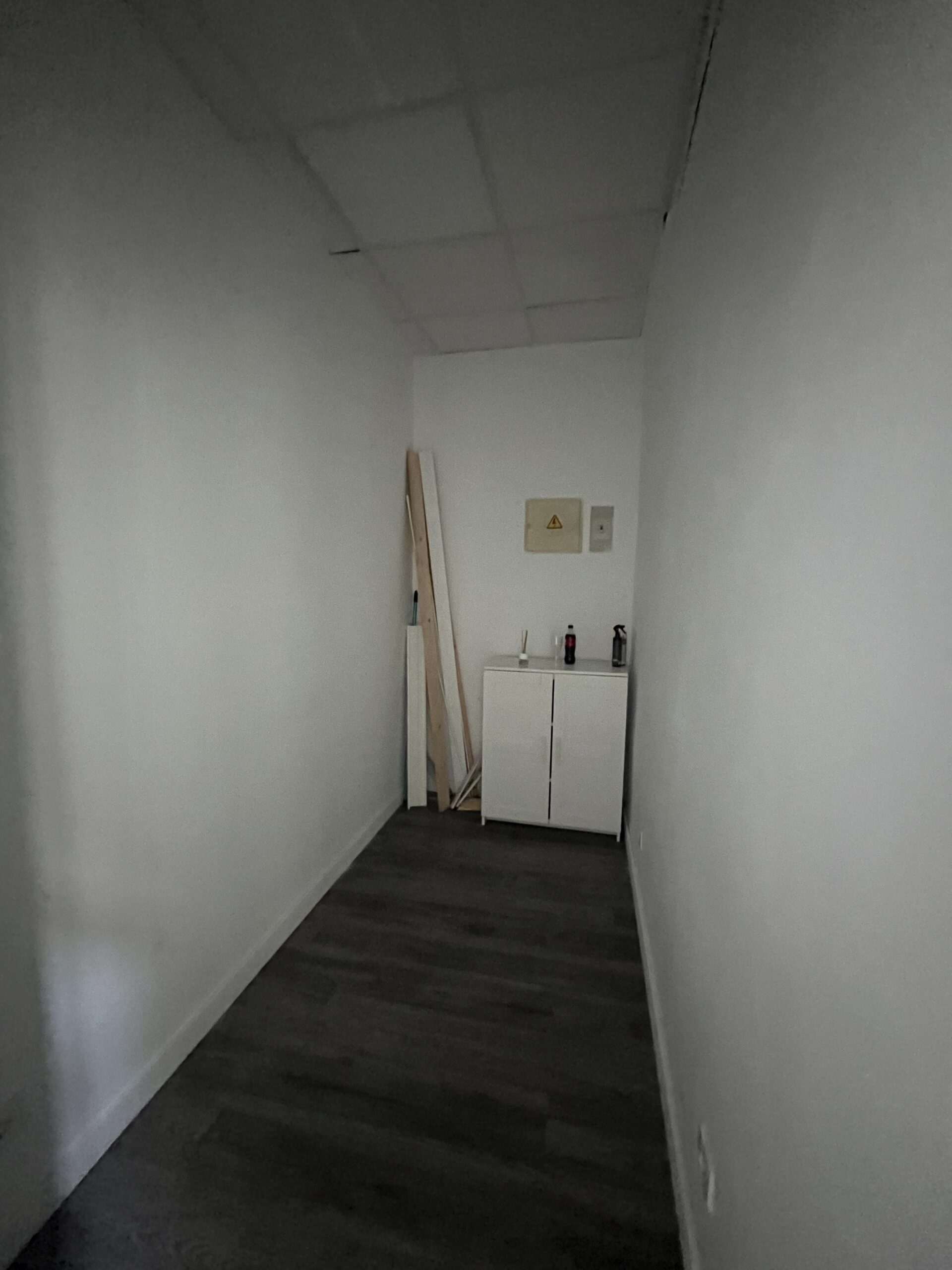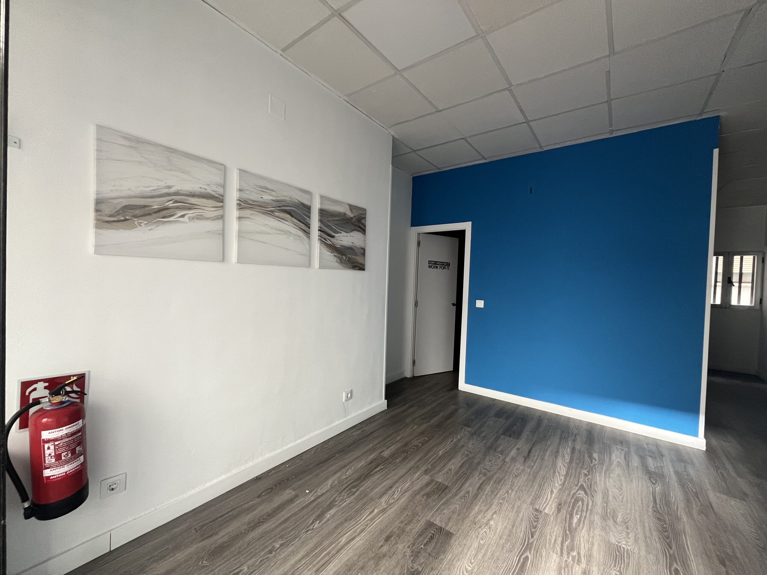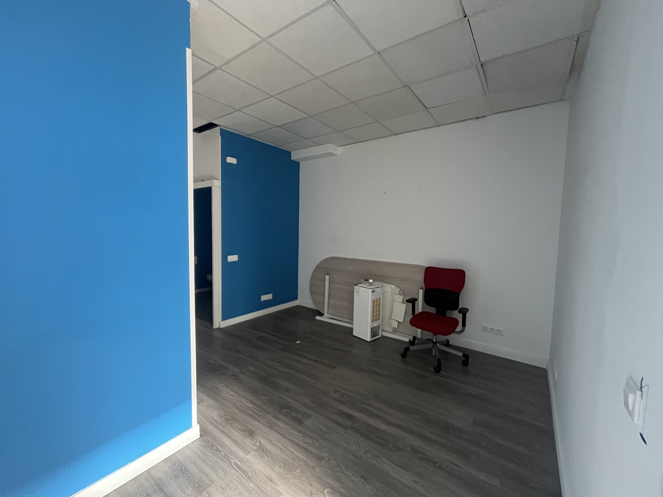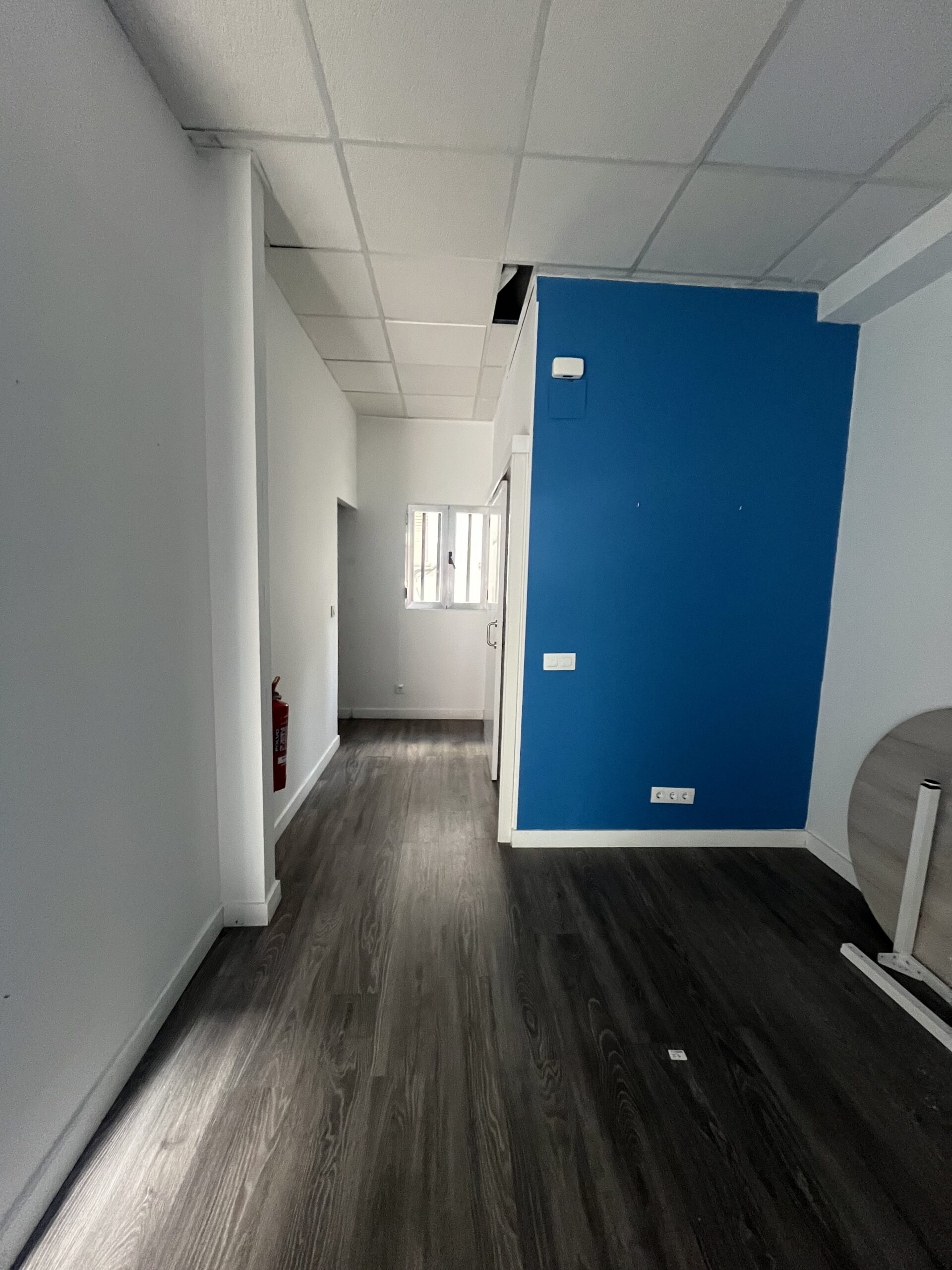 Paredes lisas, tarima flotante. Varias estancias (2 cerradas), amplio hall de acceso y sala de espera. Baño con ventana. Zona de almacén.